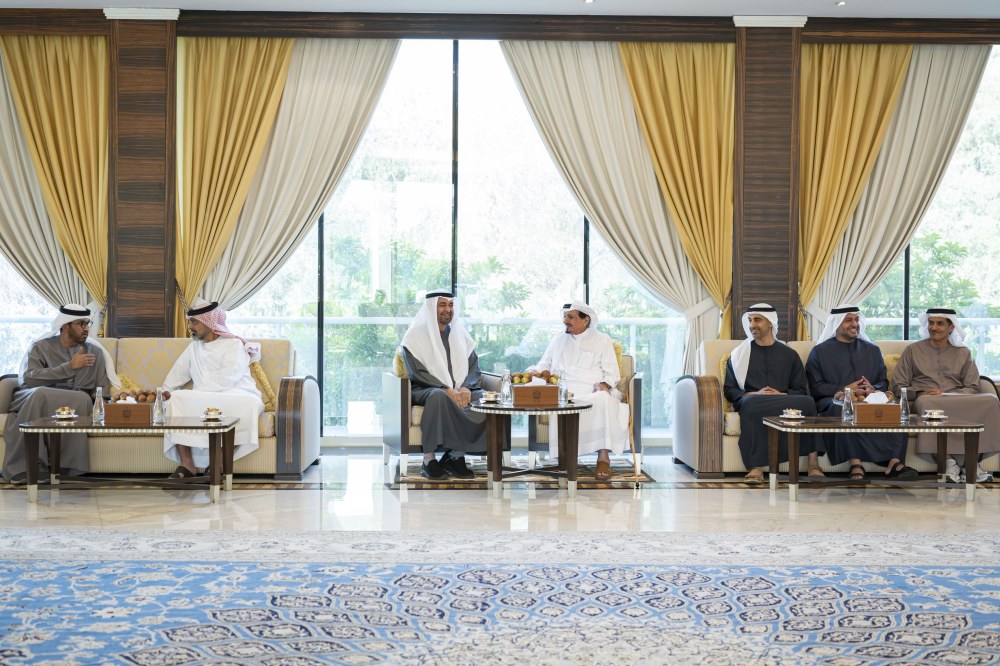 صاحب السمو الشيخ محمد بن زايد آل نهيان رئيس الدولة “حفظه الله”، أخاه صاحب السمو الشيخ حميد بن راشد النعيمي عضو المجلس الأعلى حاكم عجمان، بحضور سمو الشيخ عمار بن حميد النعيمي ولي عهد عجمان.